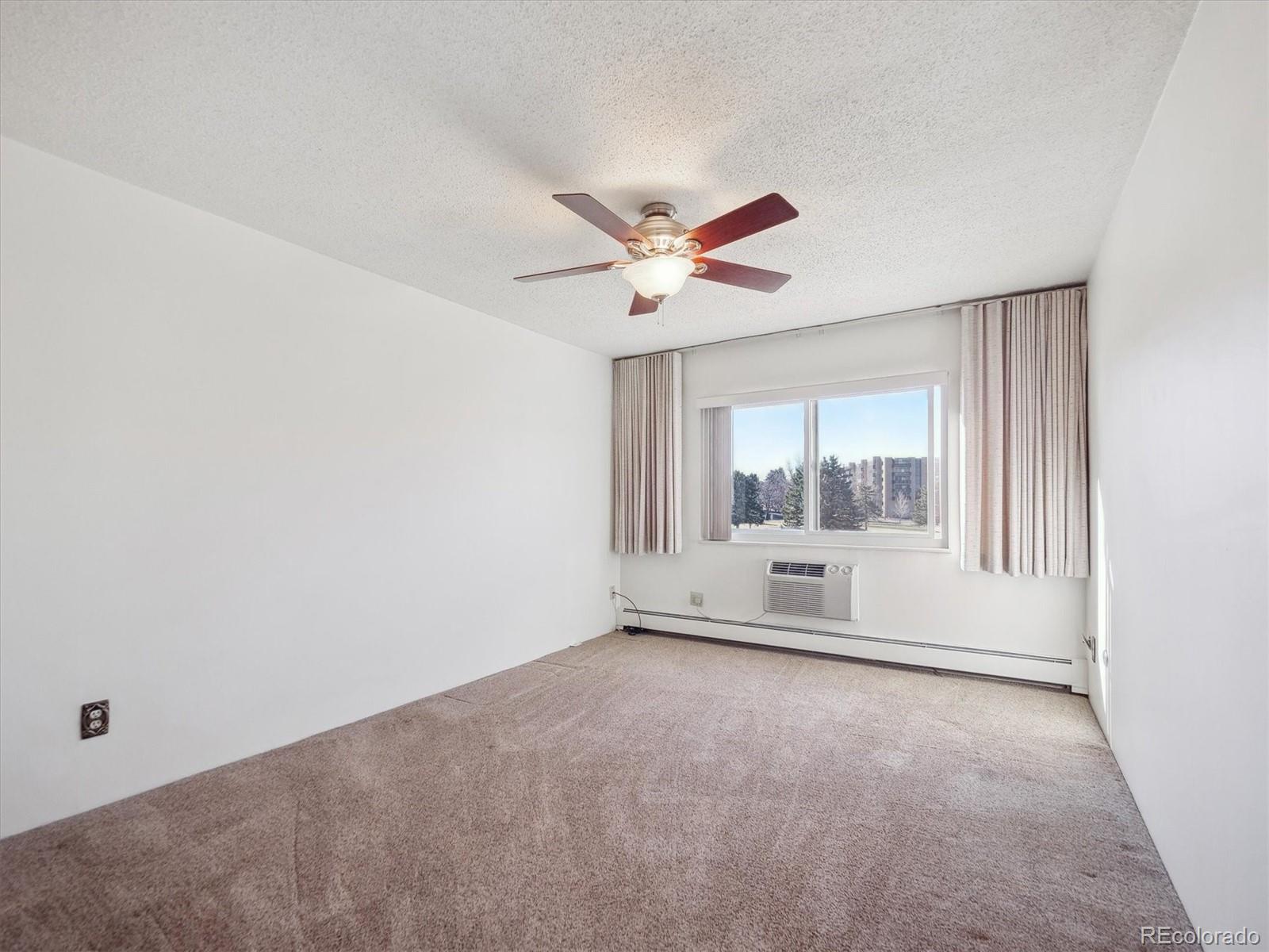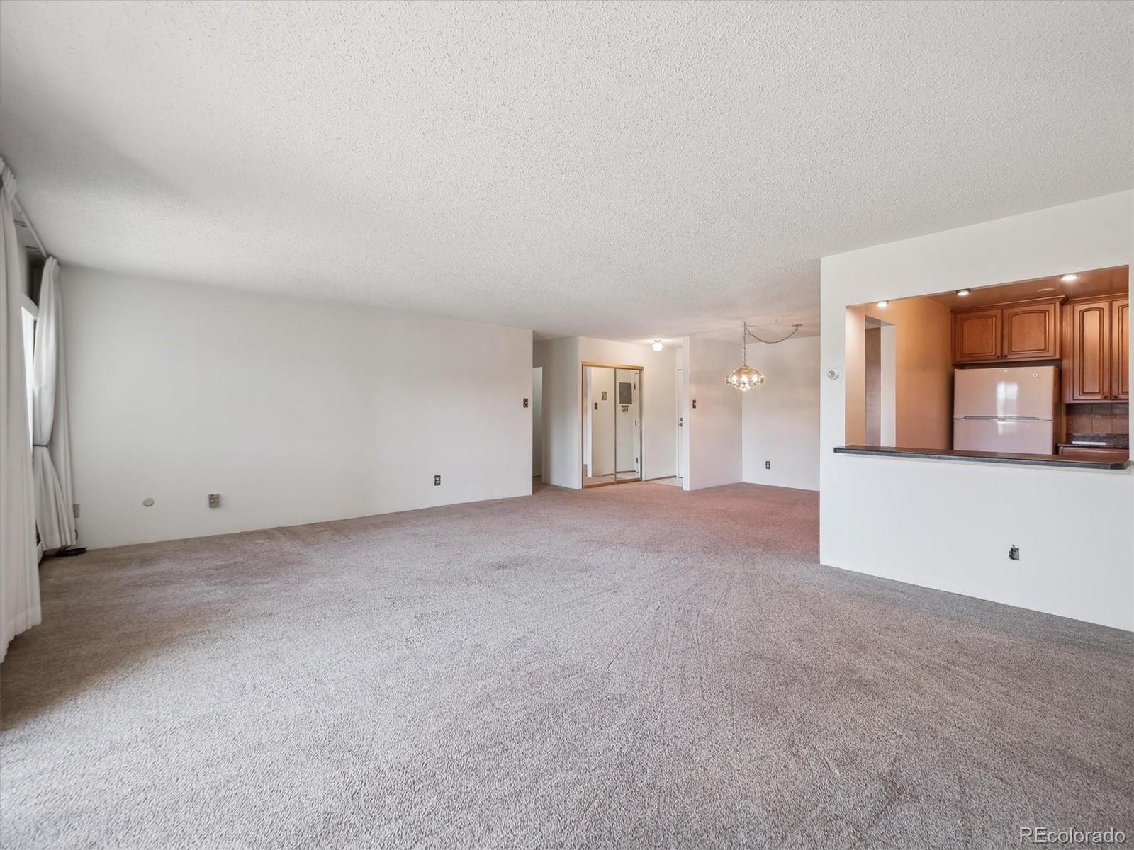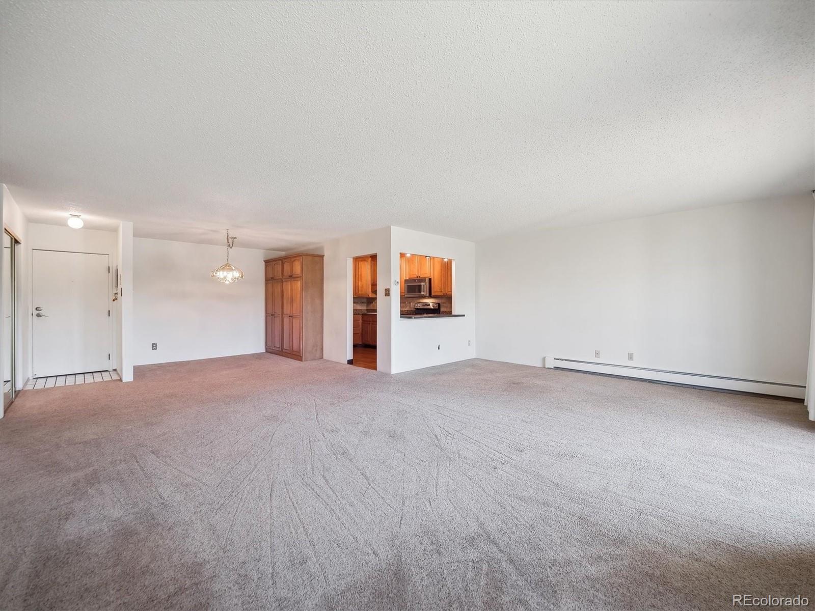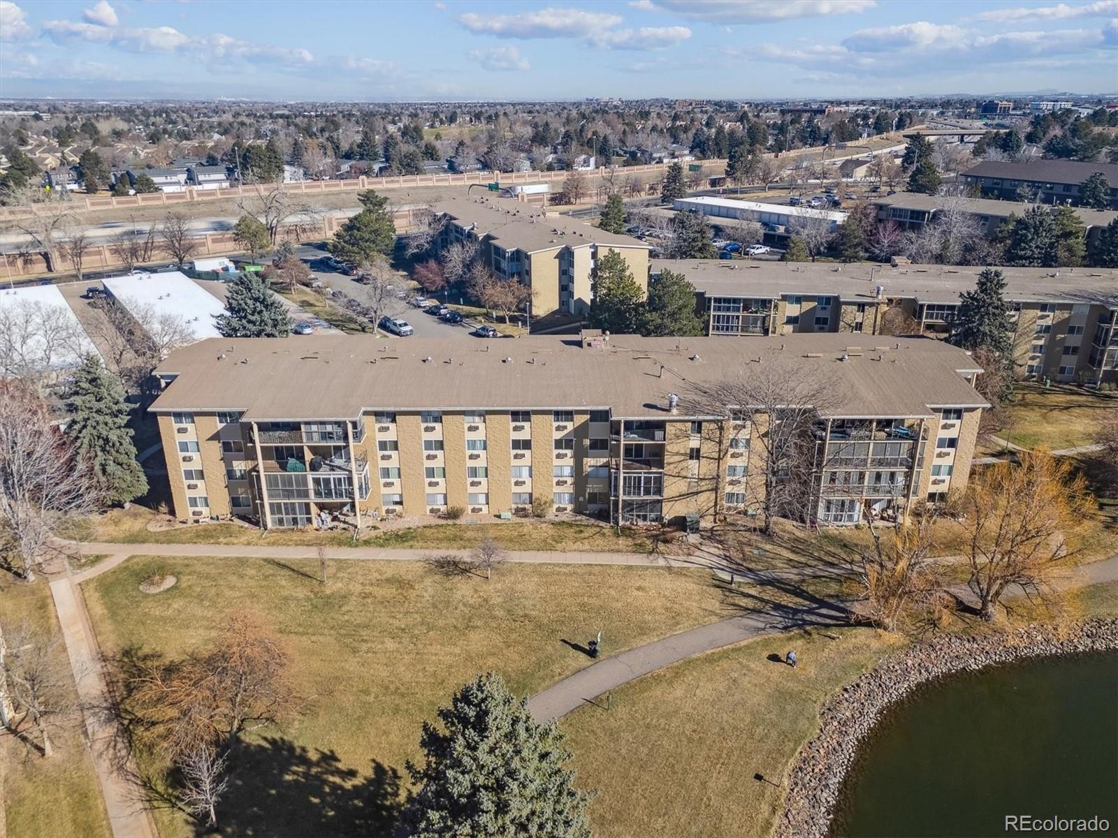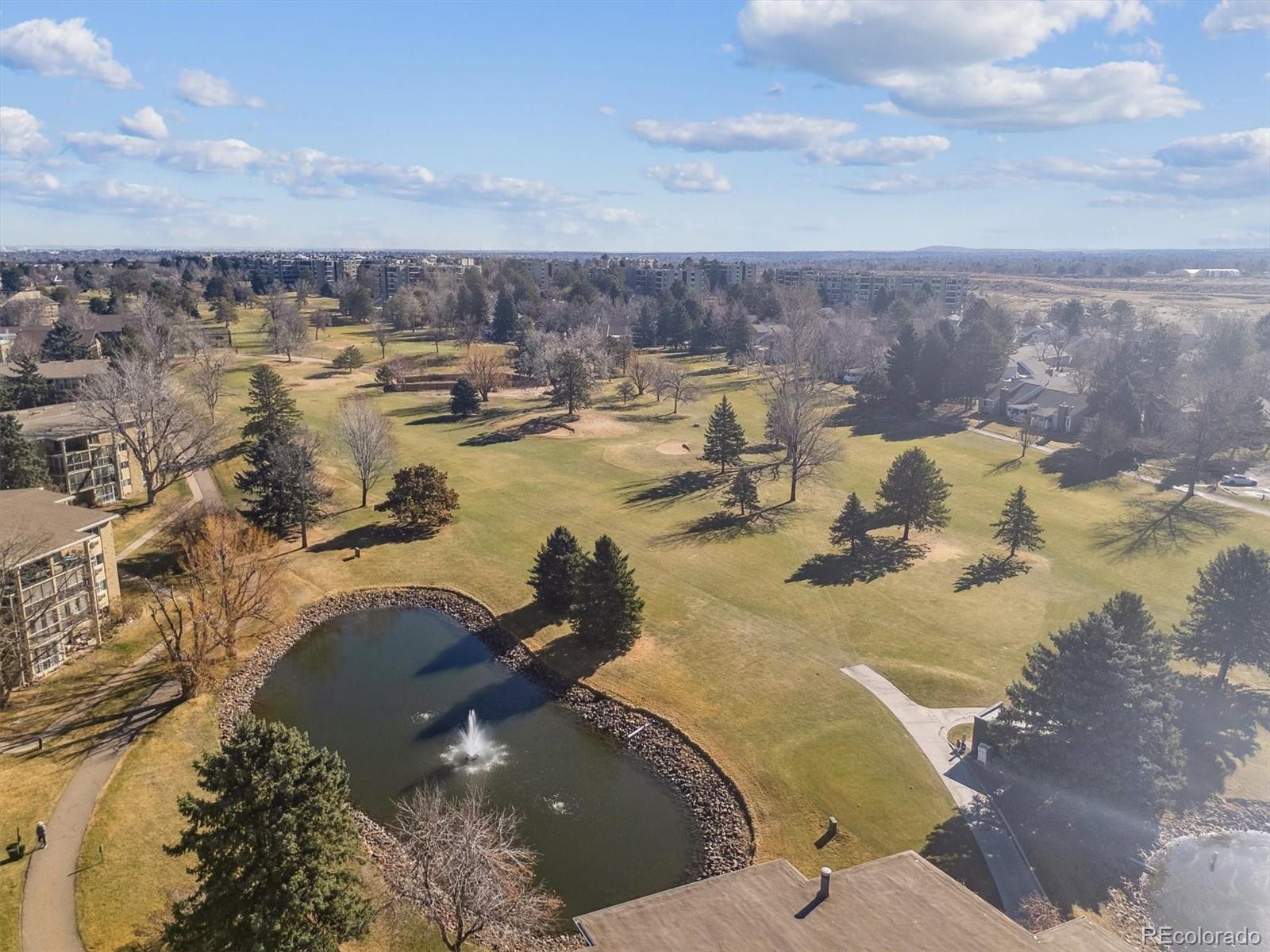 This is one of the best locations in Heather Gardens! overlooking the golf course and one of the beautiful ponds with a fountain. This Updated two bedroom two bath property features and updated kitchen with newer 42 inch cabinets with crown molding and under cabinet lighting. The lower cabinets have slide out shelves for ease-of-use. All kitchen appliances are newer and are included. The open floor plan has a large living room and dining area with additional built-in cabinets with slide out shelves. There is an additional bonus room that can be used for whatever your heart desires. This property features a large covered balcony with amazing West facing views of the golf course, pond and the beautiful Colorado sunsets. This Is a rare unit that enjoys two reserved covered parking spaces. It features a large primary bedroom with its own full private bath and walk-in closet.The Heather Gardens Community boasts a beautiful golf course, pool and hot tub. c;ubhouse, restaurant, tennis courts and so much more!