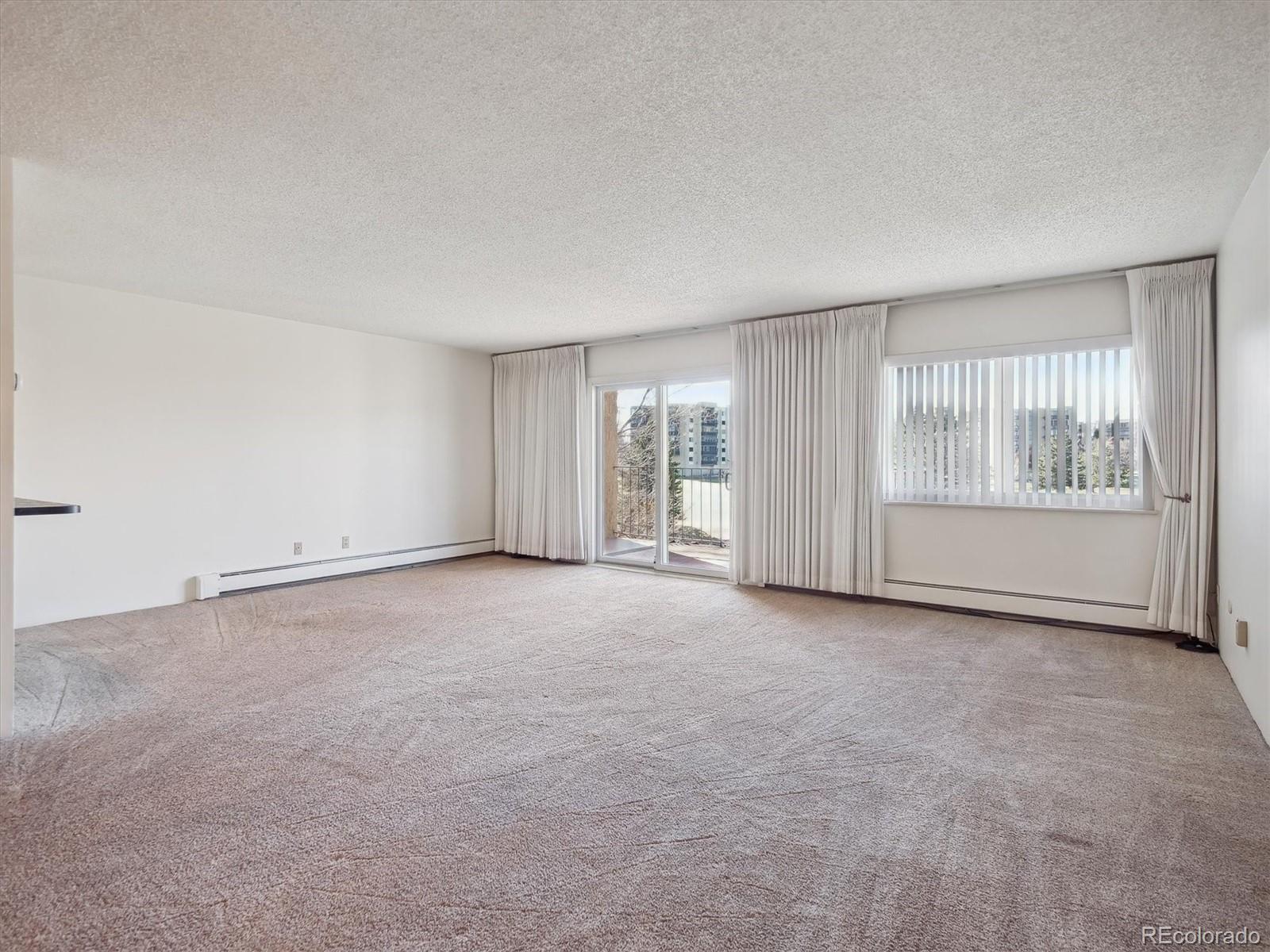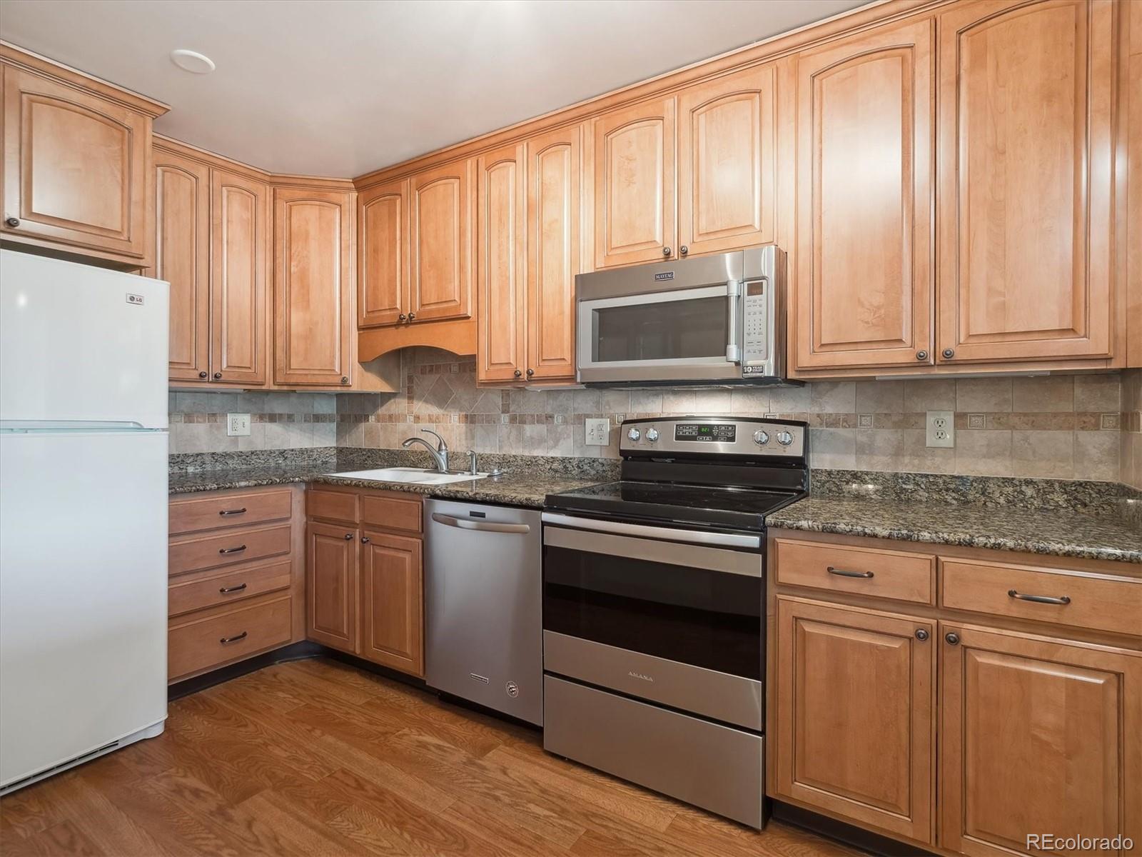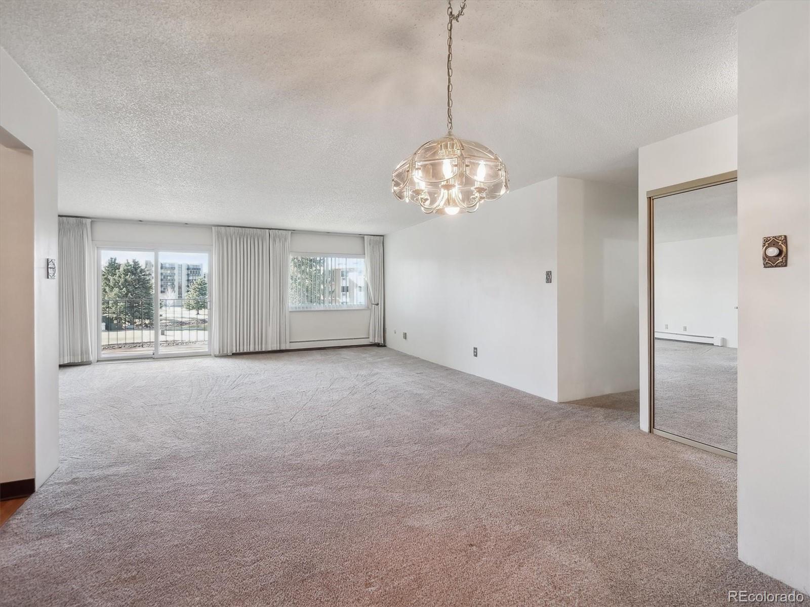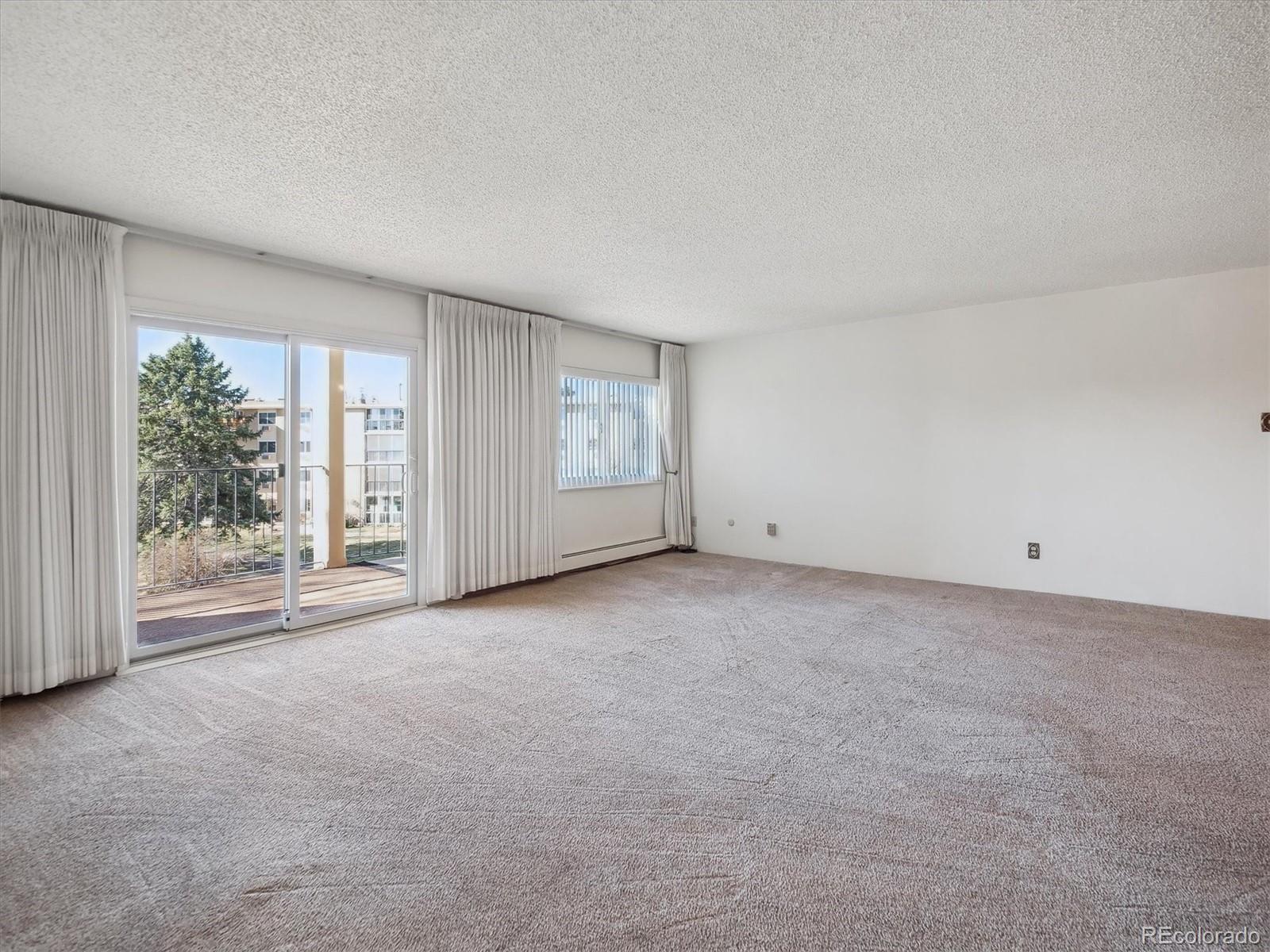 This is one of the best locations in Heather Gardens! overlooking the golf course and one of the beautiful ponds with a fountain. This Updated two bedroom two bath property features and updated kitchen with newer 42 inch cabinets with crown molding and under cabinet lighting. The lower cabinets have slide out shelves for ease-of-use. All kitchen appliances are newer and are included. The open floor plan has a large living room and dining area with additional built-in cabinets with slide out shelves. There is an additional bonus room that can be used for whatever your heart desires. This property features a large covered balcony with amazing West facing views of the golf course, pond and the beautiful Colorado sunsets. This Is a rare unit that enjoys two reserved covered parking spaces. It features a large primary bedroom with its own full private bath and walk-in closet.The Heather Gardens Community boasts a beautiful golf course, pool and hot tub. c;ubhouse, restaurant, tennis courts and so much more!