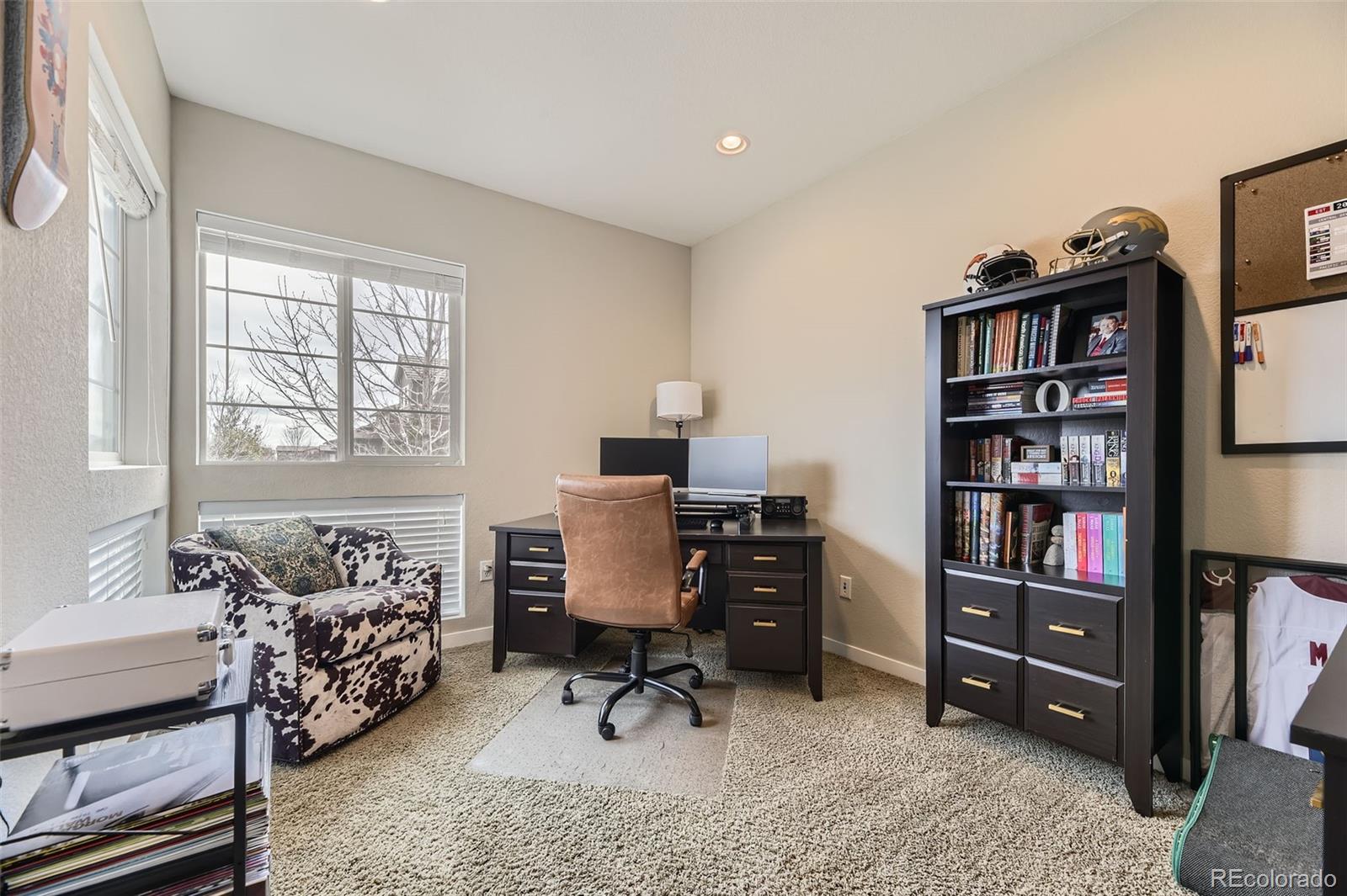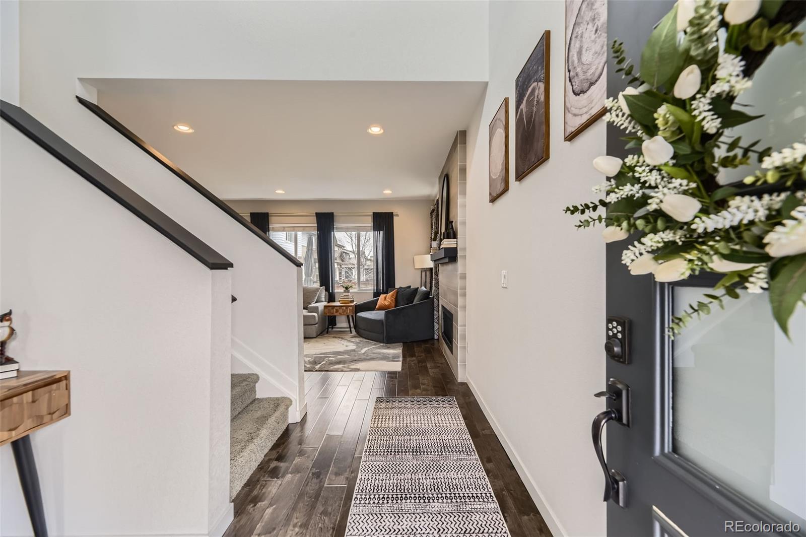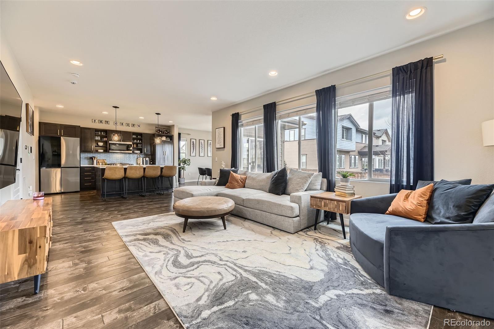 Truly all the features you look for in an amazing home! Plenty to love with this backyard that includes a 5-foot fence all the way around, west facing back patio with beautiful mountain views and enjoy watching the sunset from the 6-person hot tub. Custom floors flow throughout the main level which includes a dramatic entry with vaulted ceilings. This kitchen is a chefs delight complete with quartz countertops, massive center island, pantry, newer refrigerator, gas cooktop and top of the line stainless appliances. The light & bright dining room and spacious great room are perfect for all special occasions and cozy up by your gas fireplace. Also featuring a main floor executive study totally equipped for today's home office. Plenty to love with this luxurious primary suite featuring a sparkling custom bath and large walk-in closets. The laundry room is located on the upper level. The large open basement is ready to be finished, adding even more livable square footage. Professionally landscaped front and back complete with front porch and large backyard patio, perfect for outdoor BBQs and entertaining. Also featuring an east facing driveway for homeowners that don't enjoy shoveling snow! Walk to schools, parks and enjoy the greenbelt. Located near Parker Main Street with amazing shopping and dining. Easy access to 4-70, I-25 and DTC. Move-in condition and ready for the pickiest buyer. (((THIS IS THE ONE)))