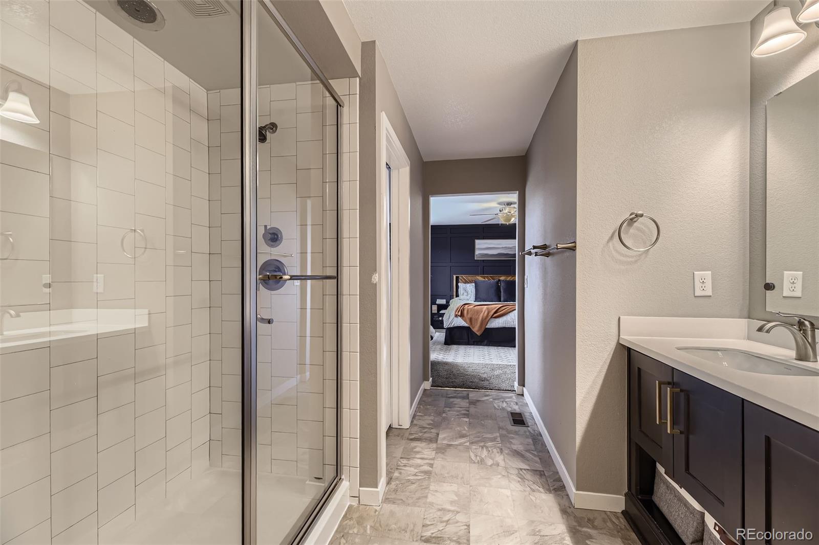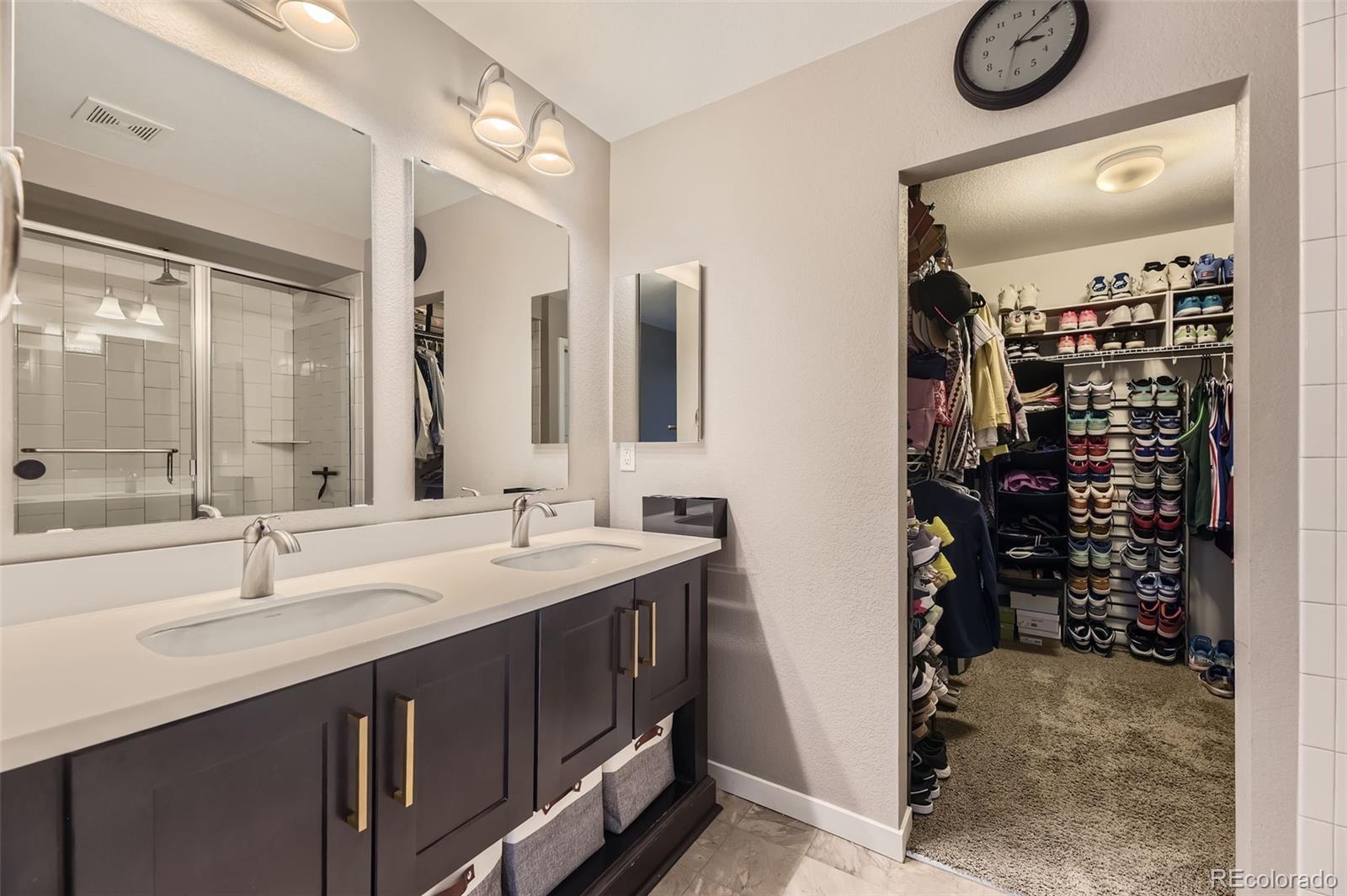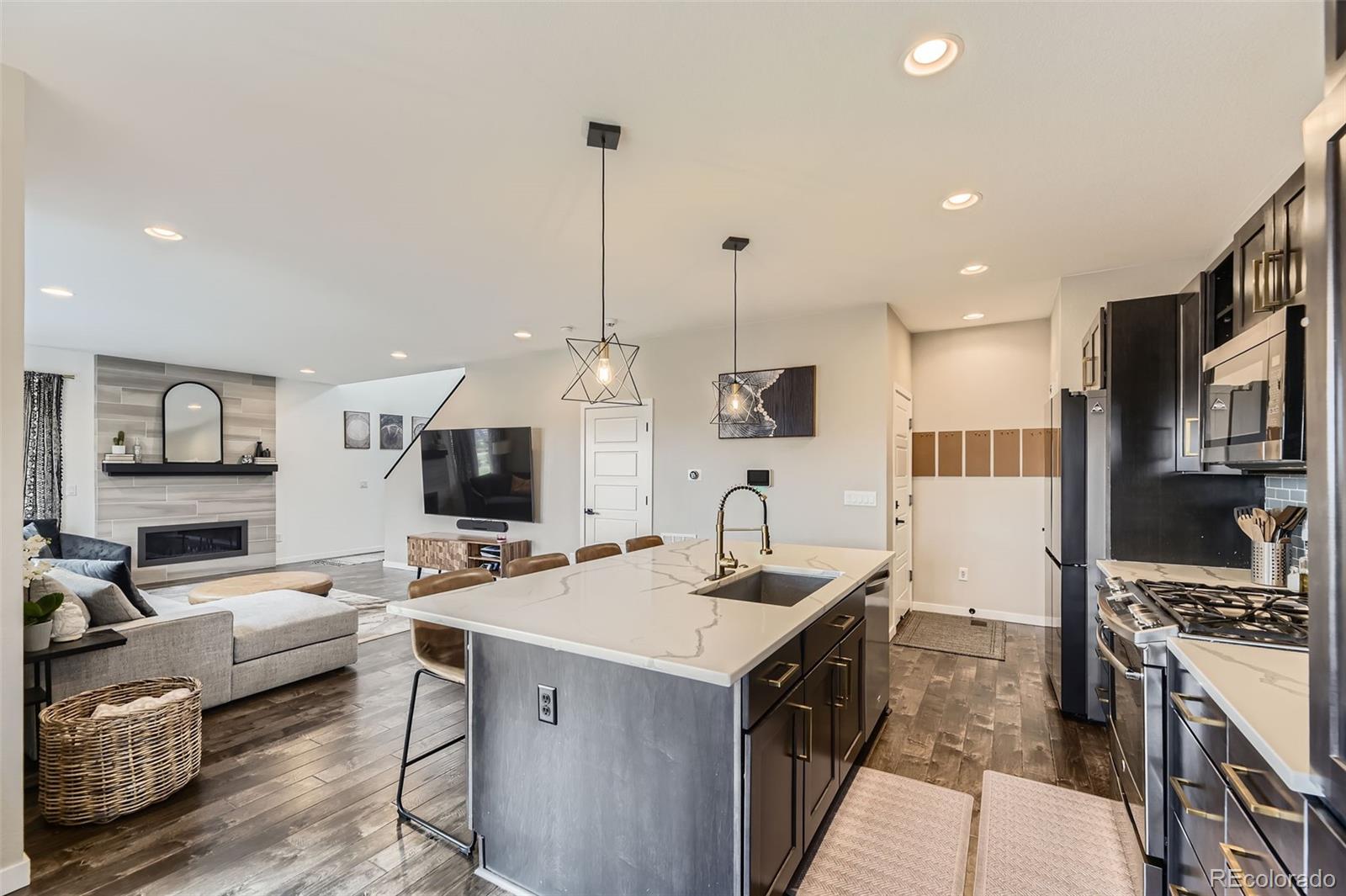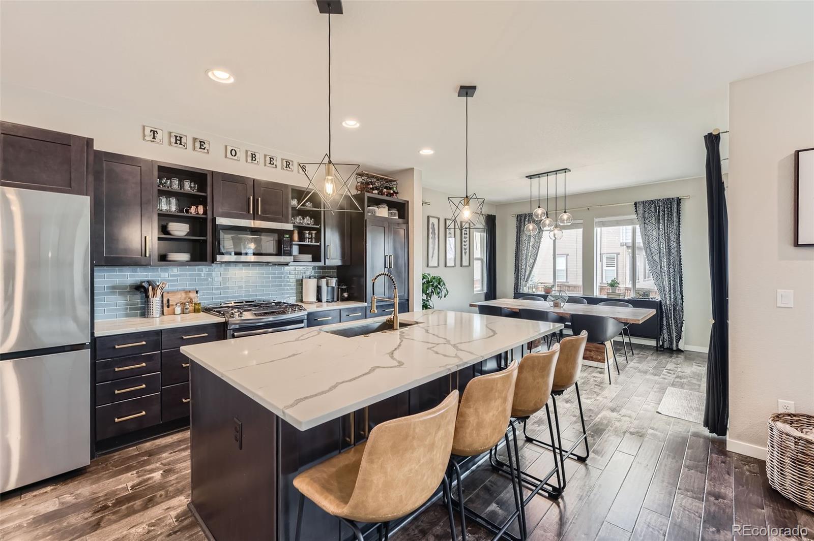 Truly all the features you look for in an amazing home! Plenty to love with this backyard that includes a 5-foot fence all the way around, west facing back patio with beautiful mountain views and enjoy watching the sunset from the 6-person hot tub. Custom floors flow throughout the main level which includes a dramatic entry with vaulted ceilings. This kitchen is a chefs delight complete with quartz countertops, massive center island, pantry, newer refrigerator, gas cooktop and top of the line stainless appliances. The light & bright dining room and spacious great room are perfect for all special occasions and cozy up by your gas fireplace. Also featuring a main floor executive study totally equipped for today's home office. Plenty to love with this luxurious primary suite featuring a sparkling custom bath and large walk-in closets. The laundry room is located on the upper level. The large open basement is ready to be finished, adding even more livable square footage. Professionally landscaped front and back complete with front porch and large backyard patio, perfect for outdoor BBQs and entertaining. Also featuring an east facing driveway for homeowners that don't enjoy shoveling snow! Walk to schools, parks and enjoy the greenbelt. Located near Parker Main Street with amazing shopping and dining. Easy access to 4-70, I-25 and DTC. Move-in condition and ready for the pickiest buyer. (((THIS IS THE ONE)))