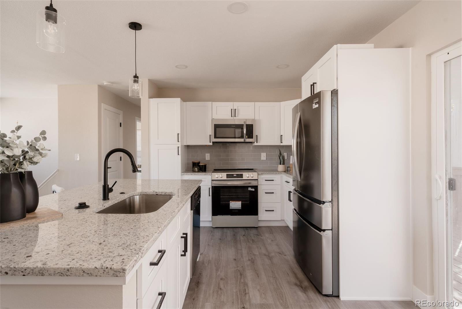 Nestled in the shadow of North Table Mountain awaits this seamlessly renovated four-bedroom, two-bathroom home, offering the perfect blend of modern comfort, functional space, and Colorado charm. With mountain views from both the kitchen and the refinished deck in the backyard, this home is perfect for day dreaming during any season. With a brand new oversized driveway, new furnace, new AC, new roof, and new sprinkler system, you won't have to worry about updating this home for over a decade! Step inside to find a bright, open-concept floor plan filled with natural light and stylish finishes. The gourmet kitchen features quartz countertops, stainless steel appliances, new cabinetry, and a large kitchen island. The living and dining areas flow seamlessly, offering great space for gatherings or quiet evenings at home. Both bathrooms have been fully updated with contemporary tile, vanities, and fixtures. The home boasts four spacious bedrooms, ample closet space, and all new LVP flooring. A finished lower level adds even more versatile living space--perfect for a media room, home office, or guest suite.Outside, enjoy a spacious backyard with room to relax, garden, or entertain. The property also features a two-car garage and sits just minutes from parks, trails, top-rated schools, and downtown Golden. Don't miss this opportunity to own a next to brand-new home in one of Golden's most sought-after communities. Schedule your private tour today!