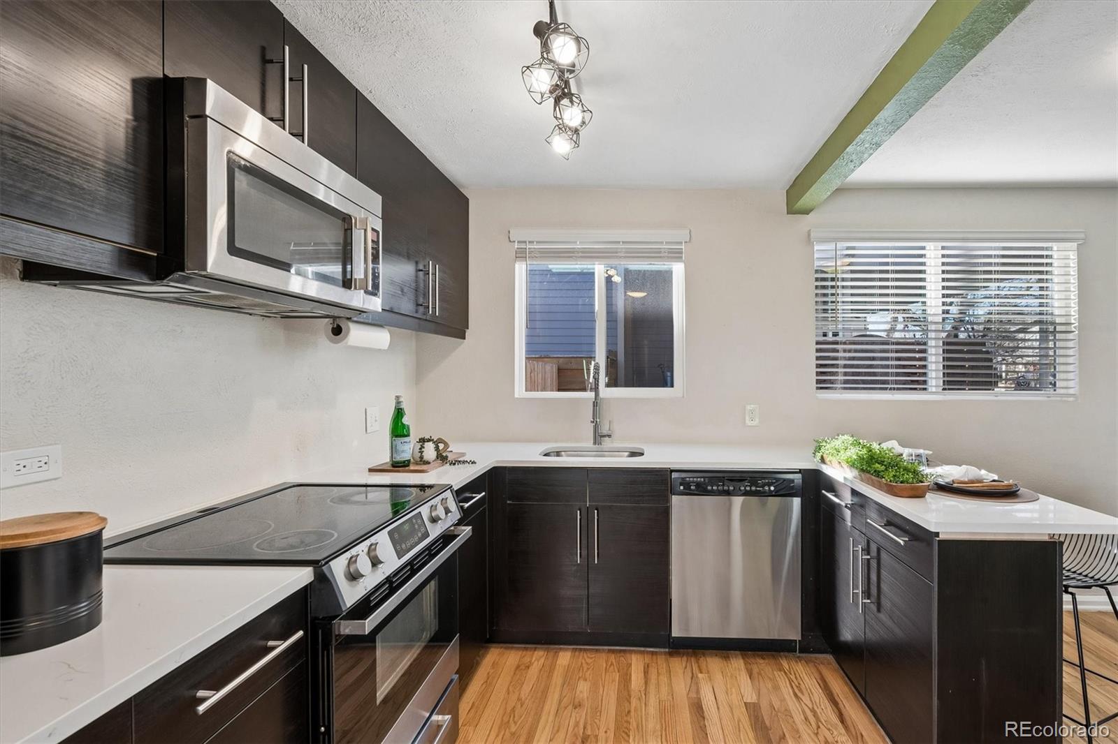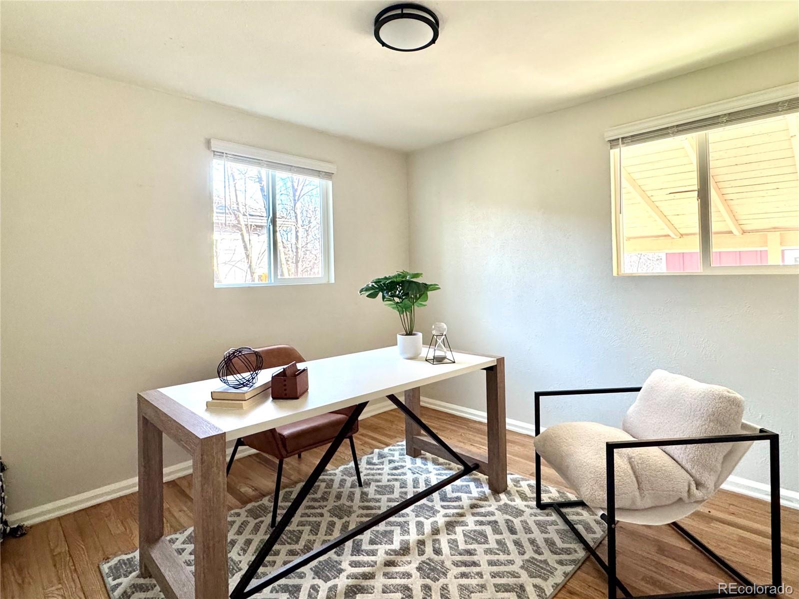 Beautiful, light and bright ranch home in a prime location! Just a few blocks from Debor Park and tucked on a quiet street, this charming home offers 2 bedrooms and 1 bath with a fantastic layout, abundant natural light, and efficient design. As you enter the home, you're welcomed by an open-concept living area that flows seamlessly into the dining space and kitchen--creating a comfortable layout ideal for everyday living and entertaining. The recently remodeled kitchen is both stylish and highly functional, featuring sleek quartz countertops, modern cabinetry, stainless steel appliances, a spacious pantry, and a convenient bar-top for additional seating--perfect for morning coffee or casual gatherings. Around the corner, you'll find two generously sized bedrooms along with a tastefully remodeled bathroom, hallway storage, and a side-by-side washer and dryer. The large lot provides a private backyard with an expansive covered patio--an ideal setting for relaxing or entertaining all summer long. Additional highlights include site-finished hardwood flooring, new windows throughout (2024), AC, newer hot-water heater, professional front and rear landscaping with drip irrigation, and an oversized 2-car detached garage. The neighborhood offers easy access to numerous restaurants and retailers, while the central location makes getting around town simple. This one won't last long--schedule your showing today.