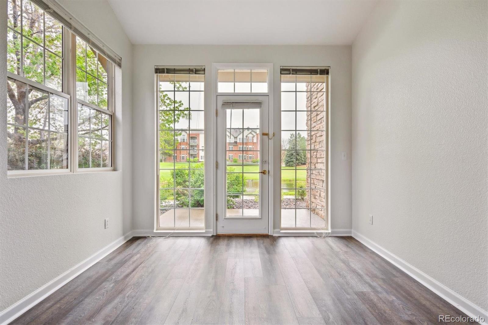 Rare and spectacular location! This ground level, end unit condominium overlooks the fourth green of the Littleton Golf Course and Tennis Club. It is quiet and peaceful. The large living room with an open-concept kitchen and a dedicated dining area leads to a patio for you to enjoy the water and golf course. The main bedroom leads to an additional patio with views of the golf course. It has its own spacious bathroom and walk-in closet. The second bedroom, next to the three-quarter bath, has a view of the golf course. The kitchen leads directly into the oversized one car garage, making access a breeze! Enjoy a clear view of the golf course, and the walking path that leads to the Platter River trail and Downtown Littleton. After the enjoyable stroll you can relax at the community pool just around the corner. Don't wait for rates to come down! Seller's lender offering 5.99 rate to qualified buyers. Rate as of 5/20/2025 and subjected to change. Other loans products and rates available depending on the buyers/borrowers personal situation. Call Matthew, the listing agent, if you are interested in contacting the seller's lender for more details or a free evaluation of your personal situation.