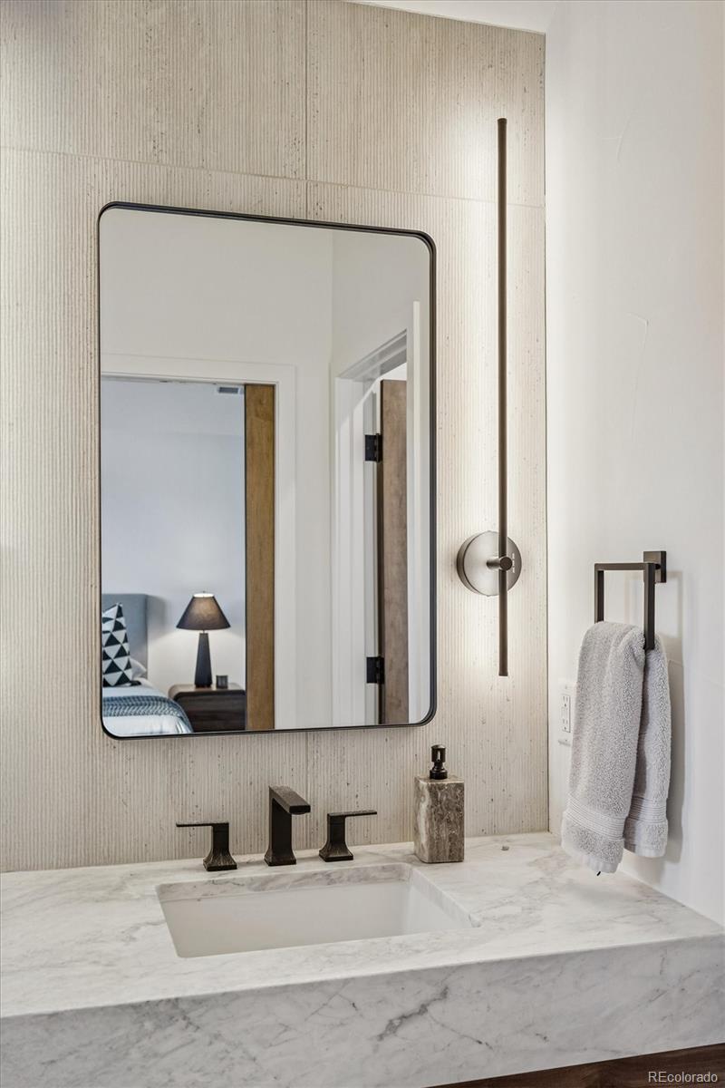 The fully finished basement extends the living space with 9'+ ceilings, a wet bar, an additional bedroom, & flex room suitable for a media room, gym, or extra bedroom (at buyer's direction). A covered rooftop deck delivers dramatic Denver skyline views with a wet bar & 42" outdoor fireplace. The oversized two-car garage includes a private ADU above - ideal for guests, nannies, or rental income. Additional highlights include paid-off solar, dual HVAC systems, multiple fireplaces, Emtek hardware & ample storage. Set in an unbeatable LoHi location with a 96 Walk Score & steps from two Michelin Star restaurants, boutiques and breweries, this home delivers timeless design & urban sophistication.