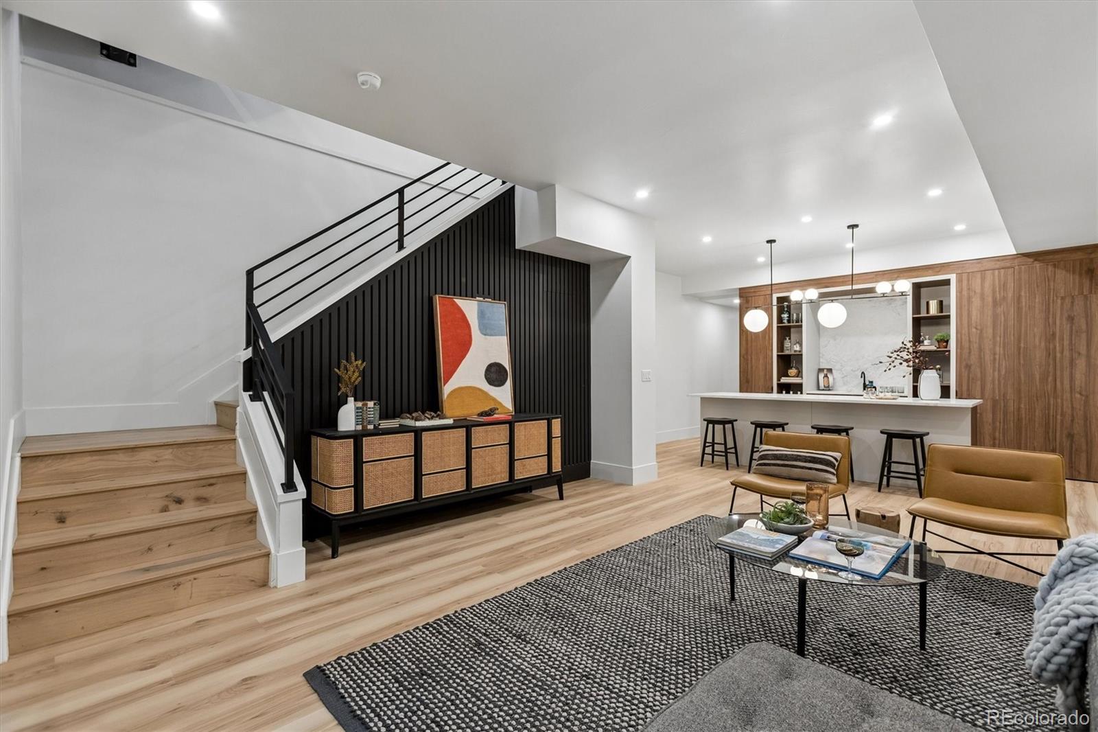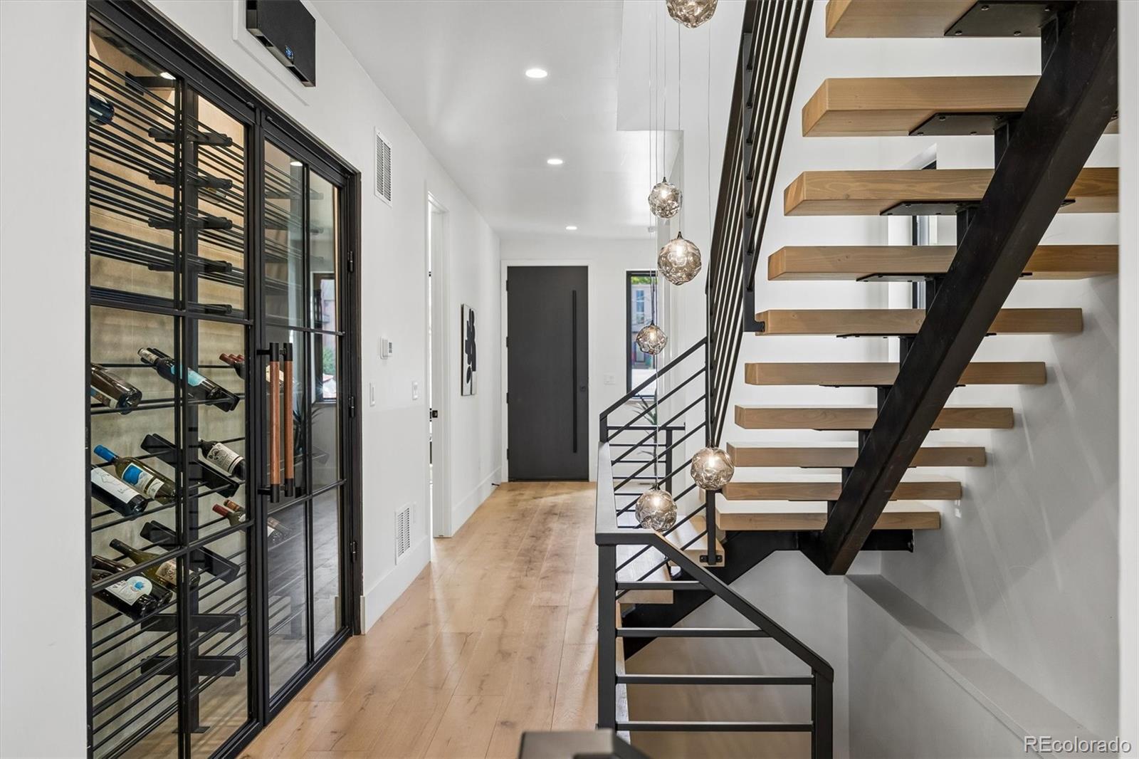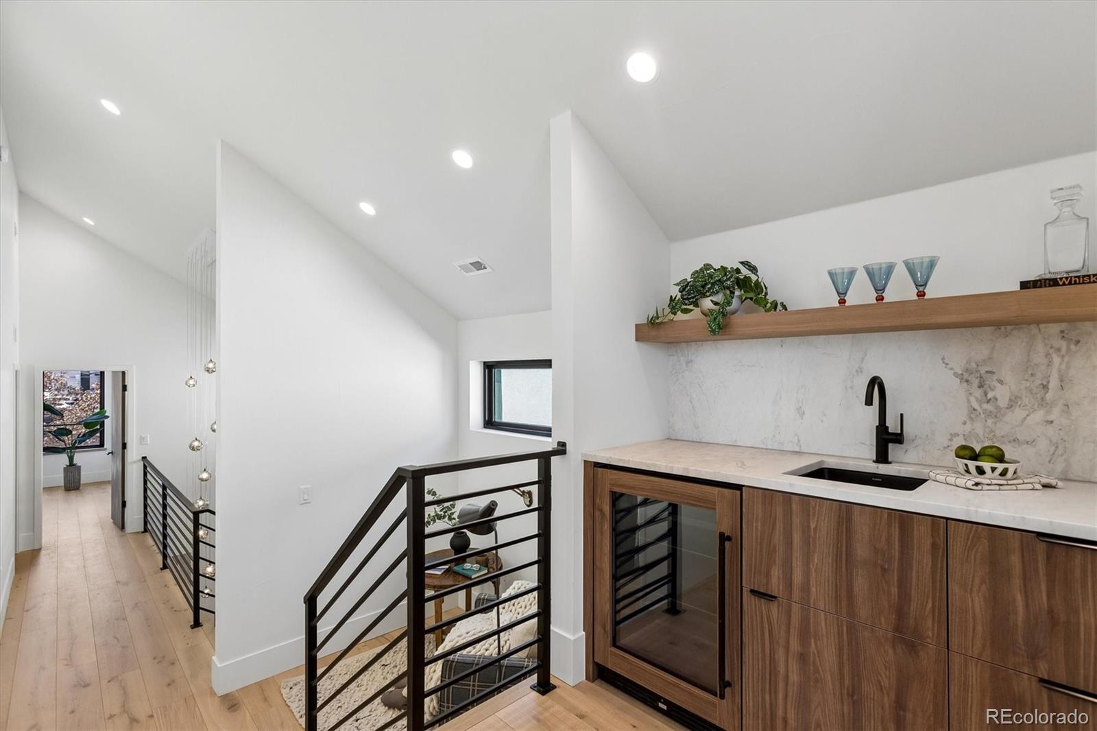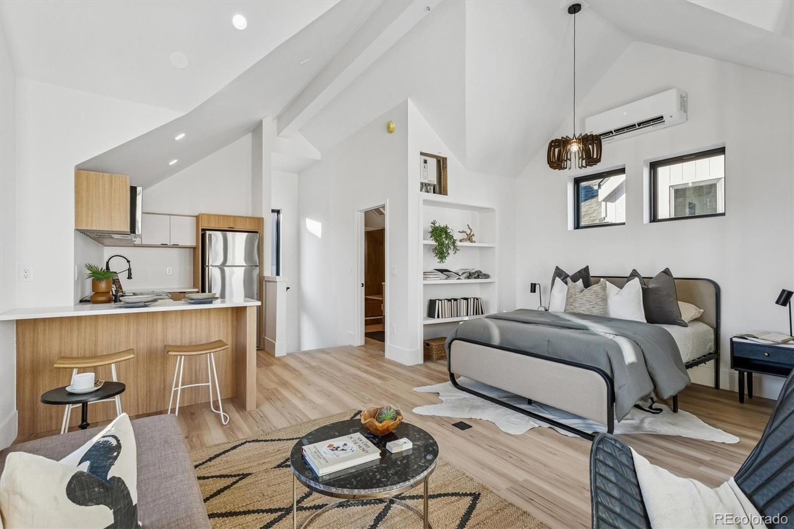 The fully finished basement extends the living space with 9'+ ceilings, a wet bar, an additional bedroom, & flex room suitable for a media room, gym, or extra bedroom (at buyer's direction). A covered rooftop deck delivers dramatic Denver skyline views with a wet bar & 42" outdoor fireplace. The oversized two-car garage includes a private ADU above - ideal for guests, nannies, or rental income. Additional highlights include paid-off solar, dual HVAC systems, multiple fireplaces, Emtek hardware & ample storage. Set in an unbeatable LoHi location with a 96 Walk Score & steps from two Michelin Star restaurants, boutiques and breweries, this home delivers timeless design & urban sophistication.