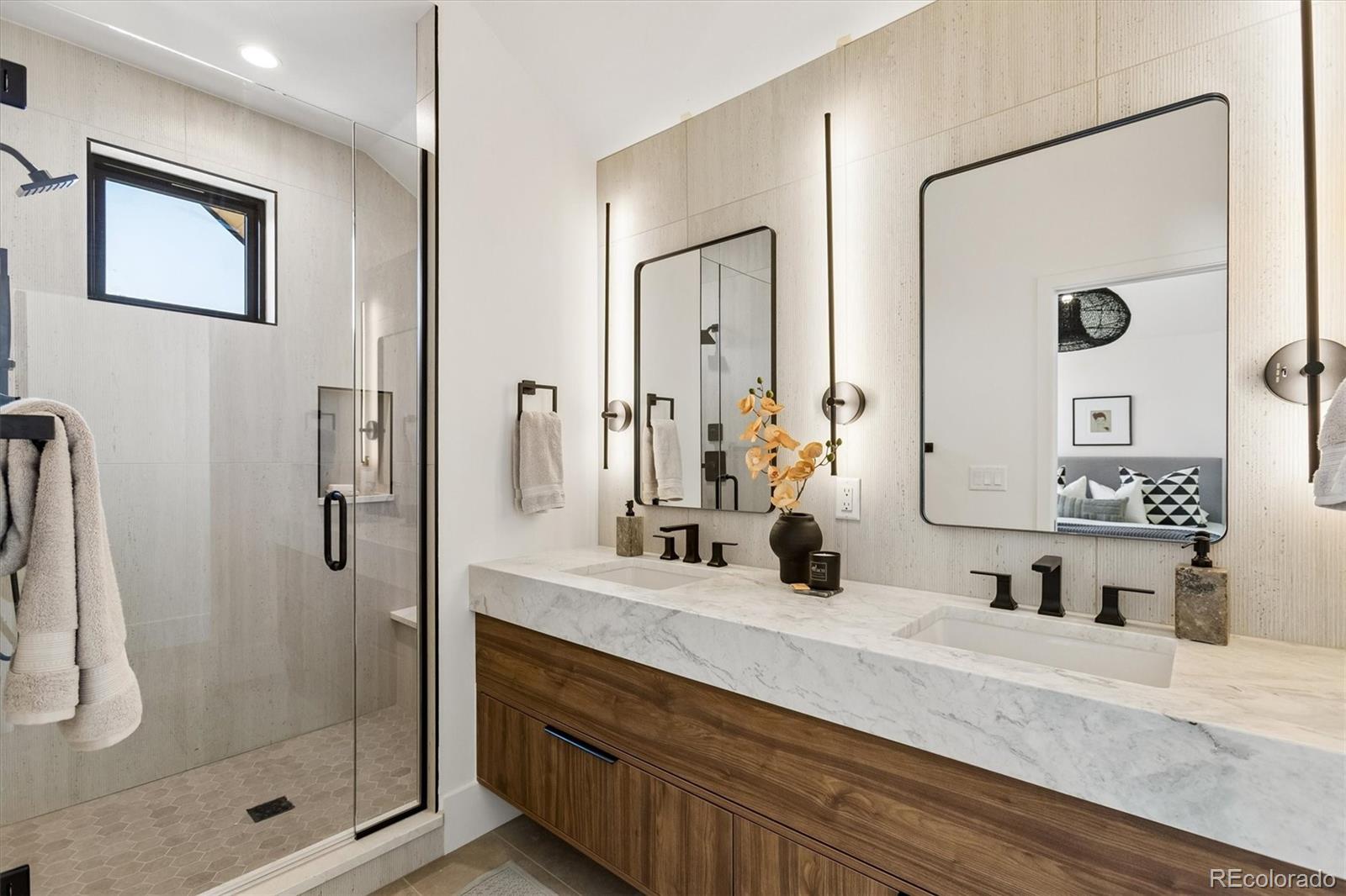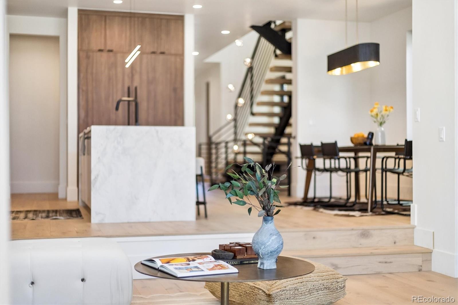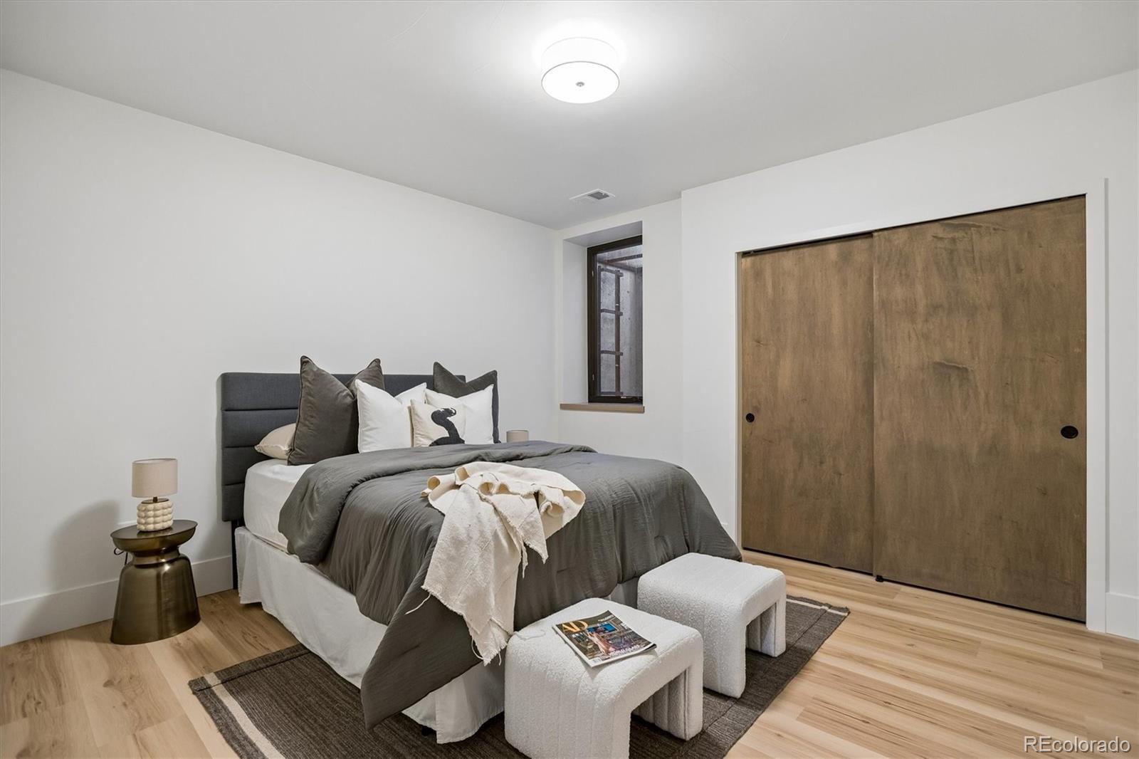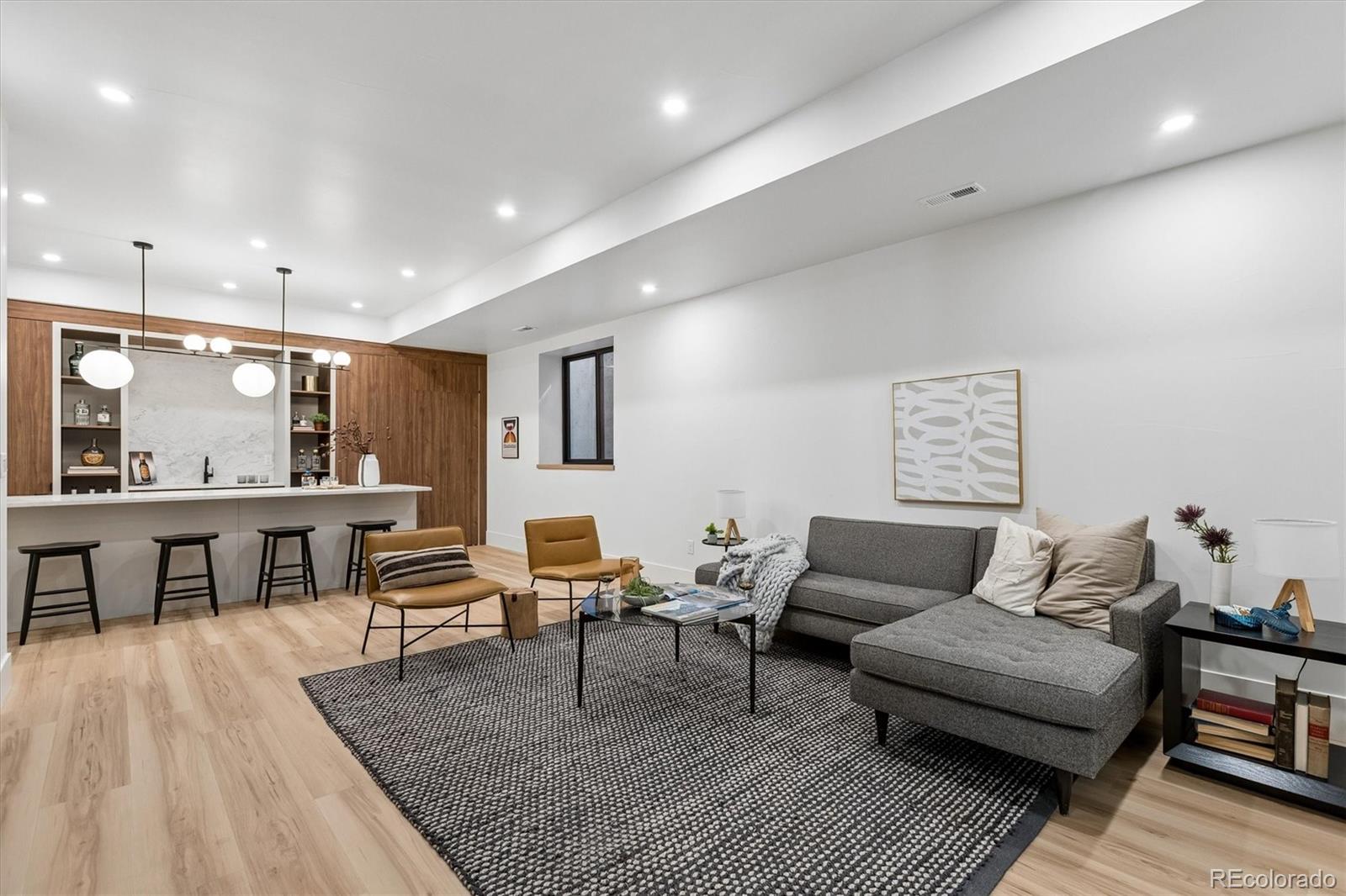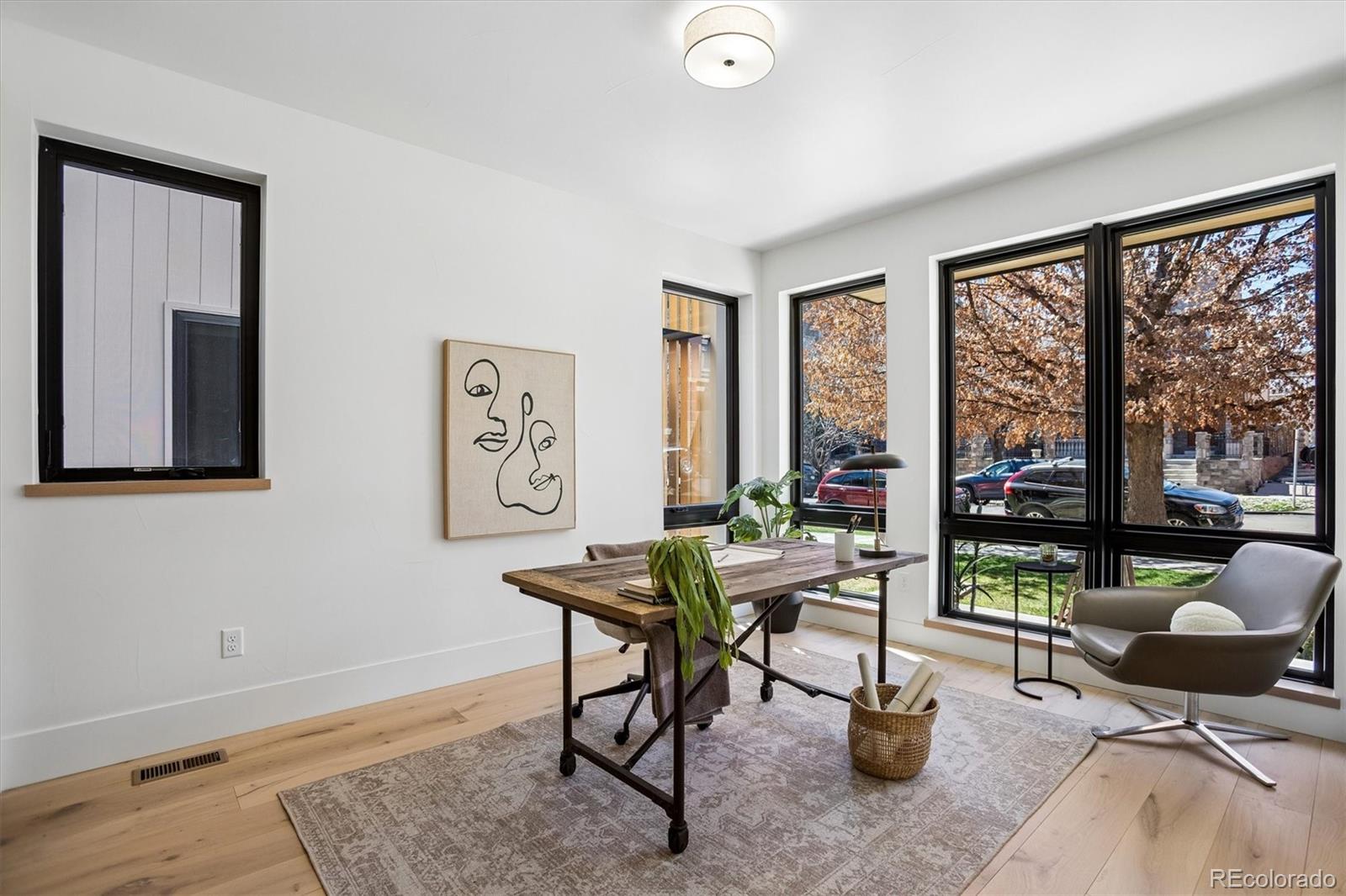 The fully finished basement extends the living space with 9'+ ceilings, a wet bar, an additional bedroom, & flex room suitable for a media room, gym, or extra bedroom (at buyer's direction). A covered rooftop deck delivers dramatic Denver skyline views with a wet bar & 42" outdoor fireplace. The oversized two-car garage includes a private ADU above - ideal for guests, nannies, or rental income. Additional highlights include paid-off solar, dual HVAC systems, multiple fireplaces, Emtek hardware & ample storage. Set in an unbeatable LoHi location with a 96 Walk Score & steps from two Michelin Star restaurants, boutiques and breweries, this home delivers timeless design & urban sophistication.