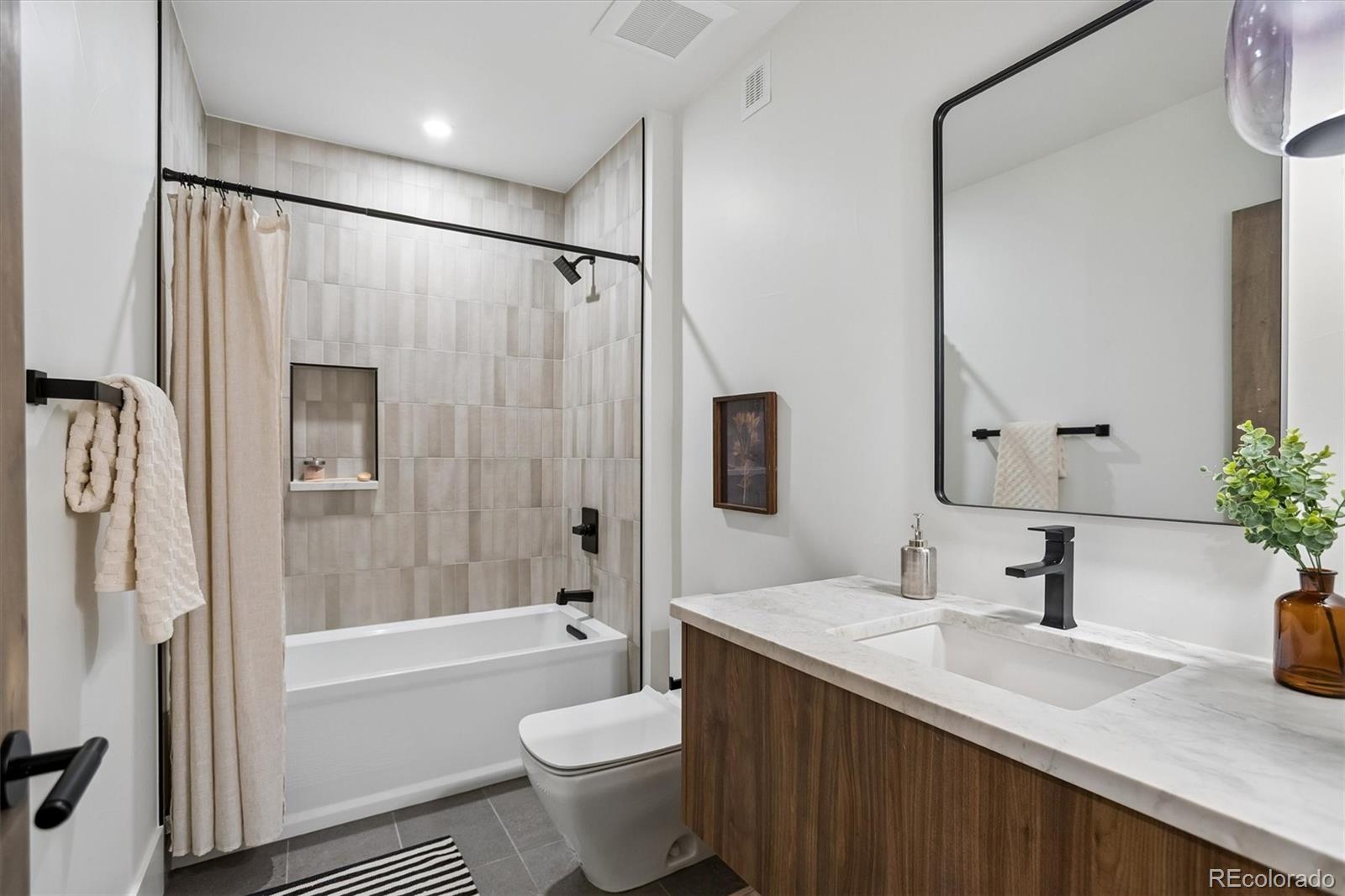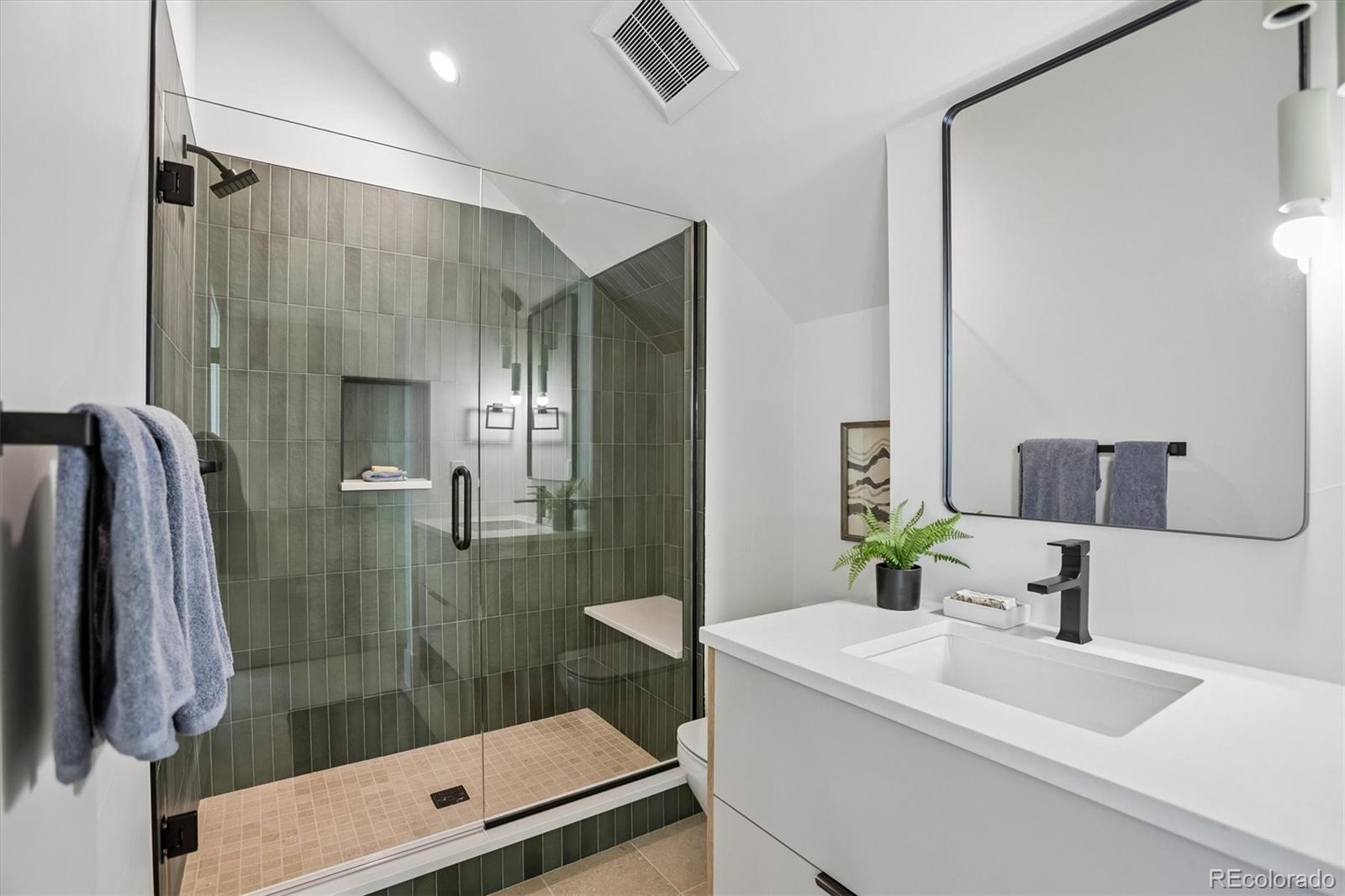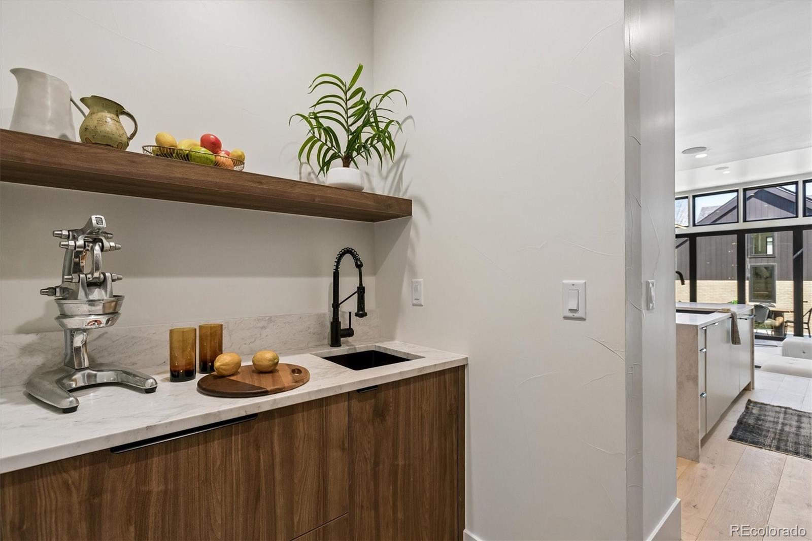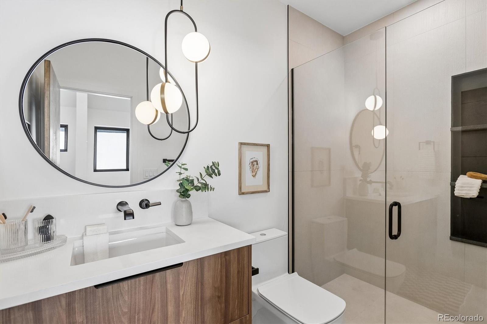 The fully finished basement extends the living space with 9'+ ceilings, a wet bar, an additional bedroom, & flex room suitable for a media room, gym, or extra bedroom (at buyer's direction). A covered rooftop deck delivers dramatic Denver skyline views with a wet bar & 42" outdoor fireplace. The oversized two-car garage includes a private ADU above - ideal for guests, nannies, or rental income. Additional highlights include paid-off solar, dual HVAC systems, multiple fireplaces, Emtek hardware & ample storage. Set in an unbeatable LoHi location with a 96 Walk Score & steps from two Michelin Star restaurants, boutiques and breweries, this home delivers timeless design & urban sophistication.