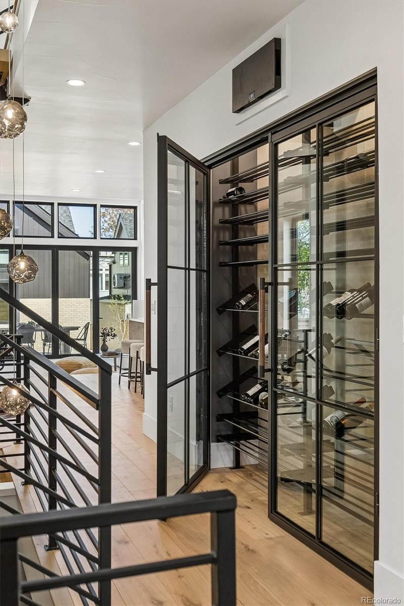 The main level welcomes you with a sense of volume & intention, unfolding into an open floorplan with dramatic 14-foot ceilings at the rear of the home that flood the space with natural light. A 12' accordion glass door spans the back wall, revealing to an oversized patio and private rear yard--perfect for outdoor gatherings with family & friends. The heart of the home features a chef-caliber kitchen with custom cabinetry, a prep pantry, Thermador appliances, natural stone countertops & a huge waterfall island. A temperature-controlled wine display for 180 bottles adds a refined touch for collectors & entertainers alike.