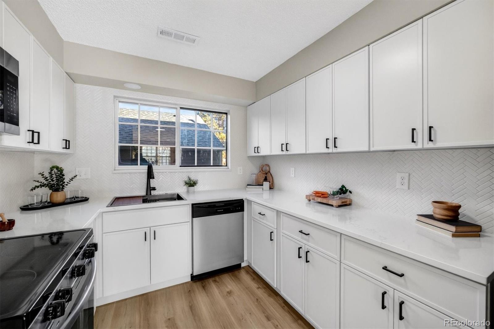 Another beautiful home meticulously remodeled and designed by celebrity designers from HGTV!! They have reimagined this home from top to bottom! No expense was spared on the transformation of this 3 bedroom, 4 bathroom dual-primary townhome. This home is pristine and the many designer touches are highlighted by all the natural light. Whether you have a growing family or love to entertain, this home is perfect! Hand selected designer lighting and fixtures, an all-new open kitchen, and designer tile are just some of the custom touches that make this home unlike any other home on the market. The wide plank luxury vinyl flooring throughout the main floor is not only beautiful, but it is easily maintained. The chef's kitchen has been completely redone with all new slim shaker cabinets, beautiful quartz counter tops, a custom tile backsplash, and stainless appliances. Both primary bathrooms are a spa like oasis with new vanities, high-end fixtures, and custom tiled showers. The main floor powder bathroom is just as impressive with a new vanity, and high-end fixtures. The bottom floor living area is great for extended family, guests, or rental income and includes a family room, fully remodeled bathroom and bedroom. All bedrooms are good sized with ample closet space and boast brand new plush carpet. All of this AND a back patio and green space, a single car garage, plus an additional assigned parking spot. Show your most discerning buyers, they are sure to fall in love!!